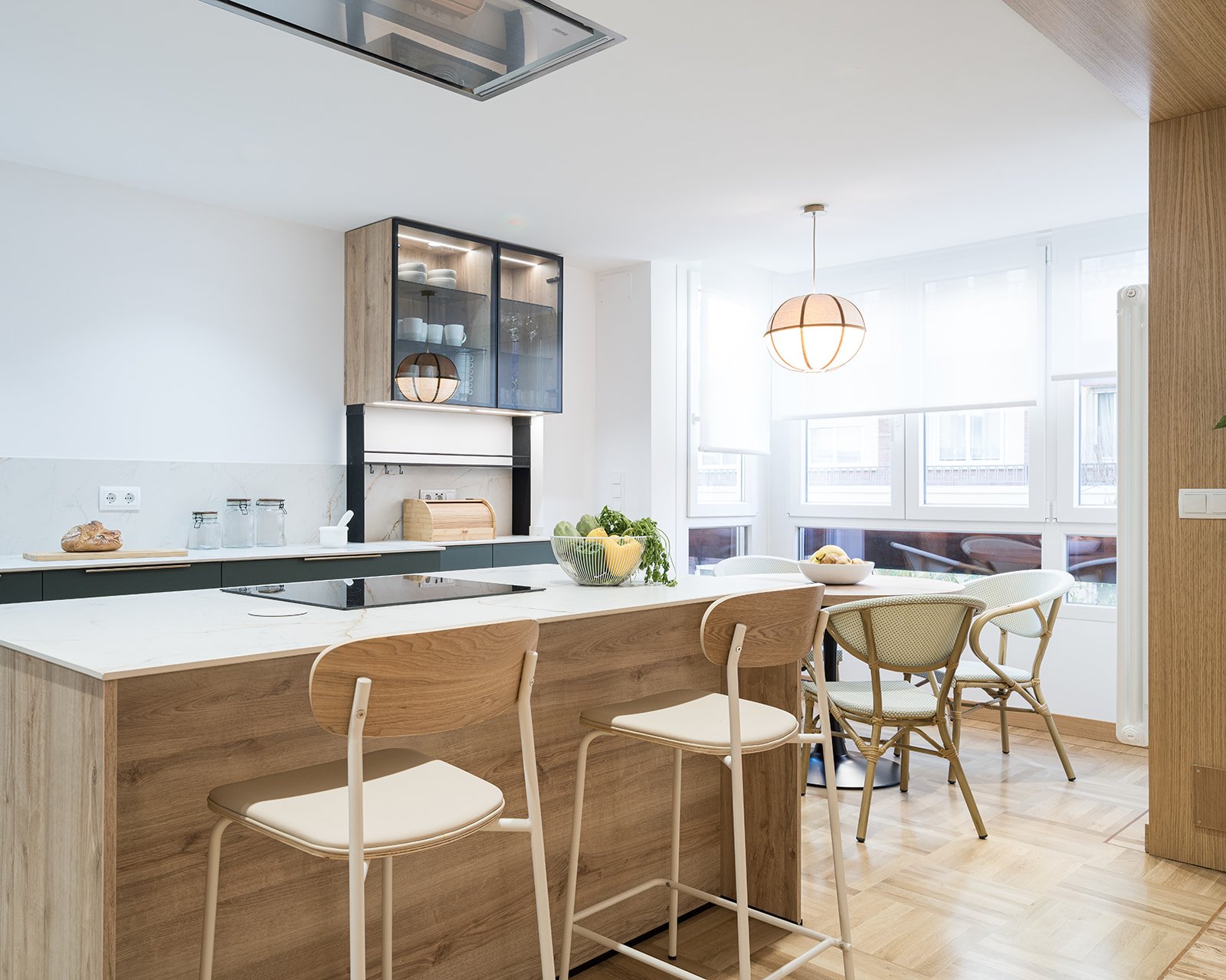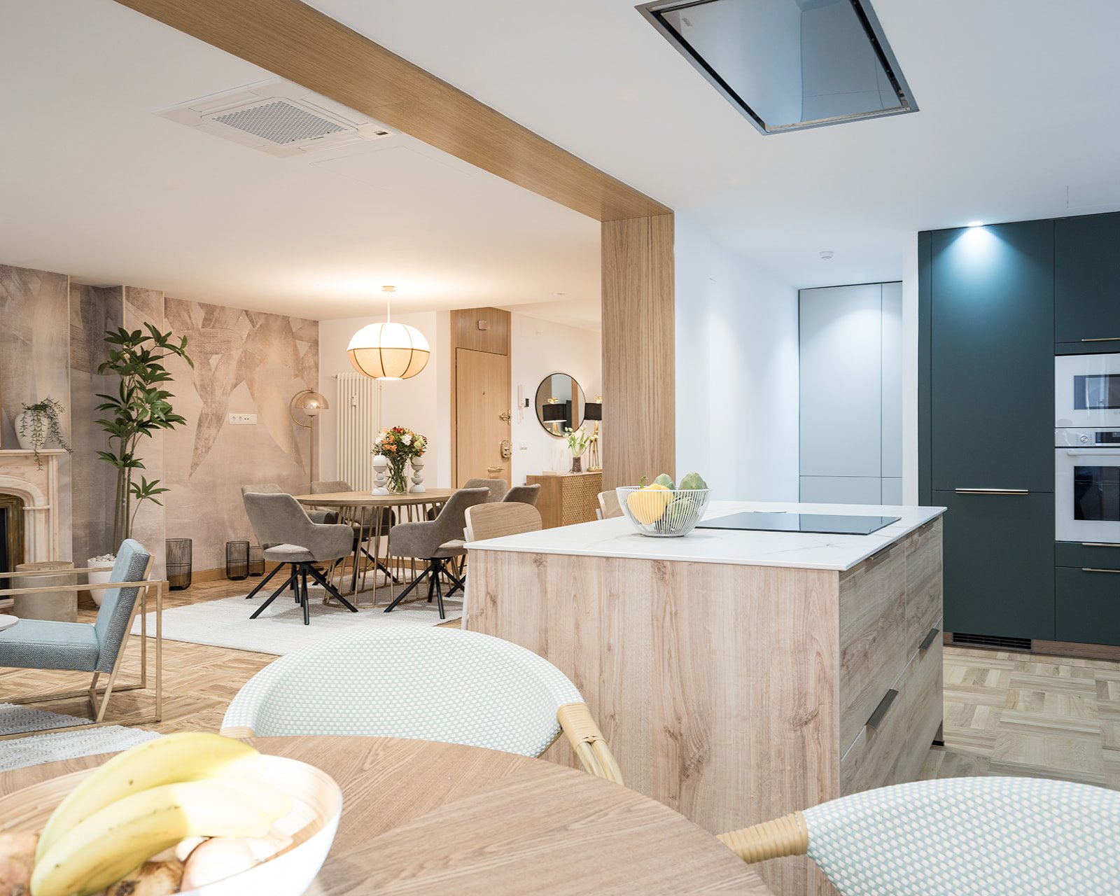 El proyecto se centró en ganar amplitud, potenciar la luz natural y mejorar la funcionalidad del día a día. Mantuvimos elementos originales con valor arquitectónico y los integramos en una distribución más fluida. El resultado equilibra diseño sobrio y soluciones prácticas, incorporando tecnología doméstica de forma discreta para conservar calidez y carácter.